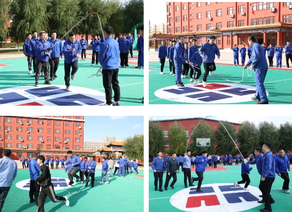 大绳“8”字跳,,,,,,,磨练的是团队合作能力,,,,,,,“一、二、三、跳”整齐的口号让人热血欢喜,,,,,,,他们程序灵动、争分夺秒,,,,,,,每一次跳跃都充满了力量与美感,,,,,,,展现出了起劲拼搏最美的姿态。。。。。