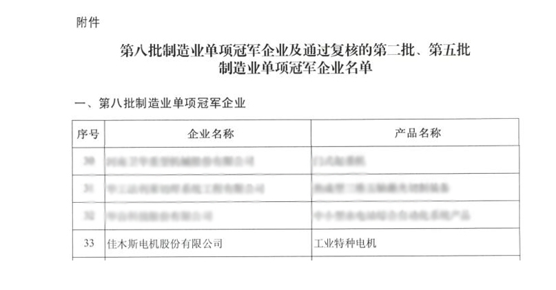 克日,,,,,,,国家工业和信息化部第八批制造业单项冠军企业名单正式宣布,,,,,,,哈电集团佳木斯电机股份有限公司(以下简称“优德88官网网站股份”)作为“工业特种电机企业”庆幸上榜。。。。。这一声誉的取得,,,,,,,不但彰显了公司在工业特种电机产品制造领域的卓越实力,,,,,,,更凸显了公司在解决客户需求方面的优异能力。。。。。