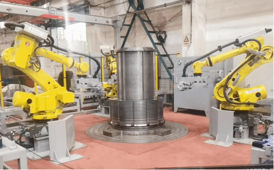 定子铁心叠装机械人事情单位,,,,,配备2D+3D视觉识别系统以及六轴枢纽机械人等装备,,,,,实现了电机定子铁心的自动叠装。。。。。。。。