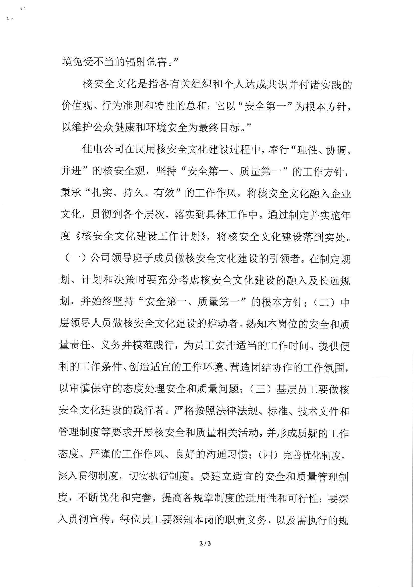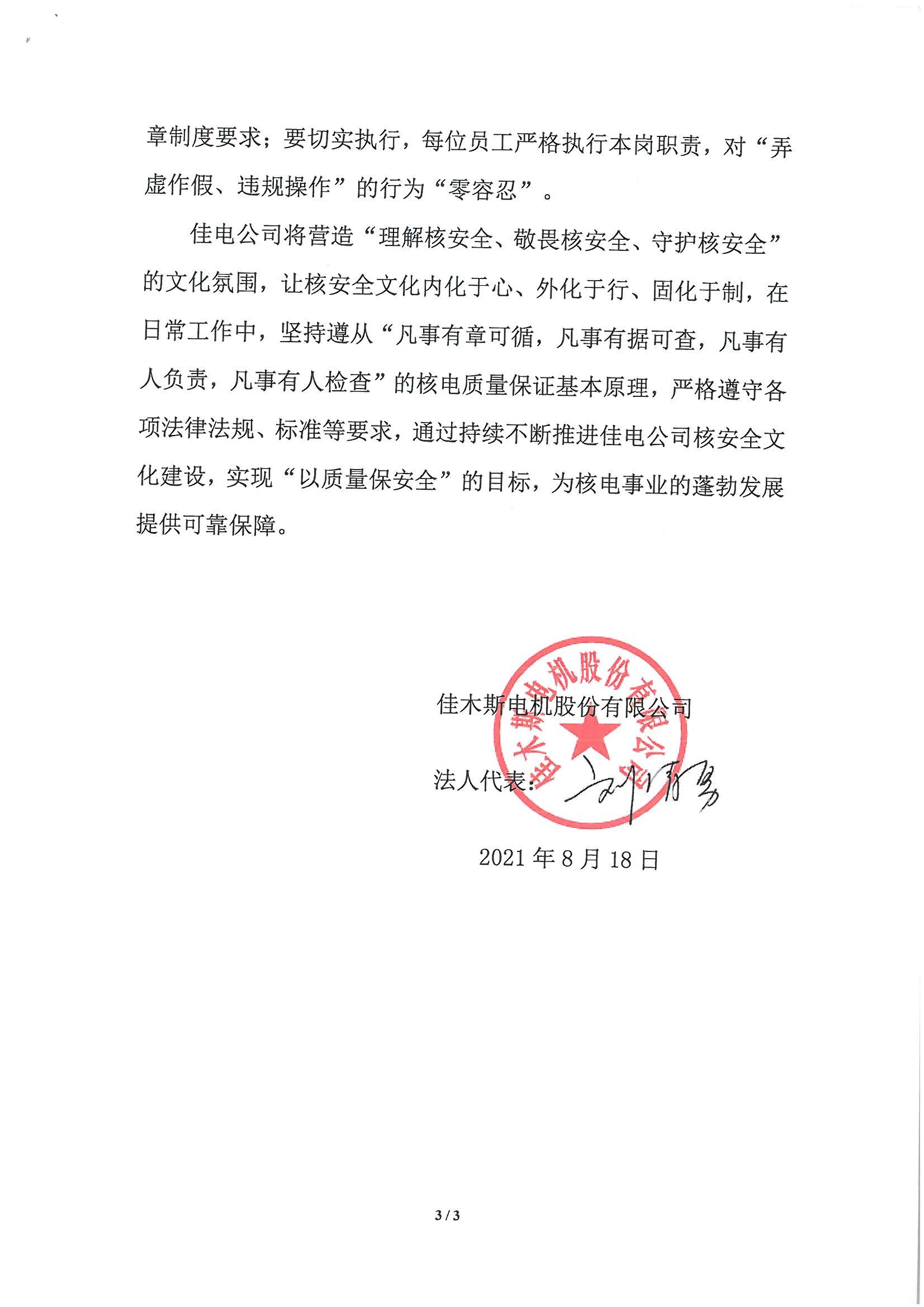 《佳木斯电机股份有限公司核清静文化政策声明》